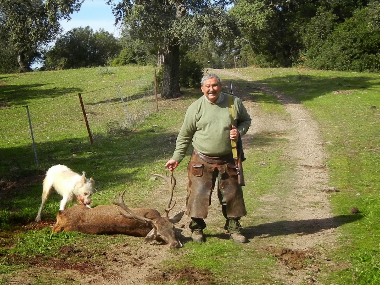 Y vamos a vé como baila Migué…. La poca brisa que hay en ese espinar me viene de cara. Voy con un rifle, pero las músicas y chistes para después. Me meto a gatas, despacio, escuchando los latidos del perro. Debo estar a cuatro o cinco metros. A mi entrada en esa pequeña plaza llena de arbustos veo varios bultos que el perro señala. Me pongo de pie. Una cochina me ve y también se levanta. Nos quedamos mirando el uno al otro. No sé qué reacción tendrá, por lo que tengo el dedo en el gatillo apuntando entre sus ojos… Parece que da dos pasos para alejarse… y detrás de ella veo al macario más grande que hasta la fecha he contemplado… Sin pensarlo di dos saltos con la guardia baja y le soplé un trallazo que le ayudó a no tener necesidad ni de levantarse…